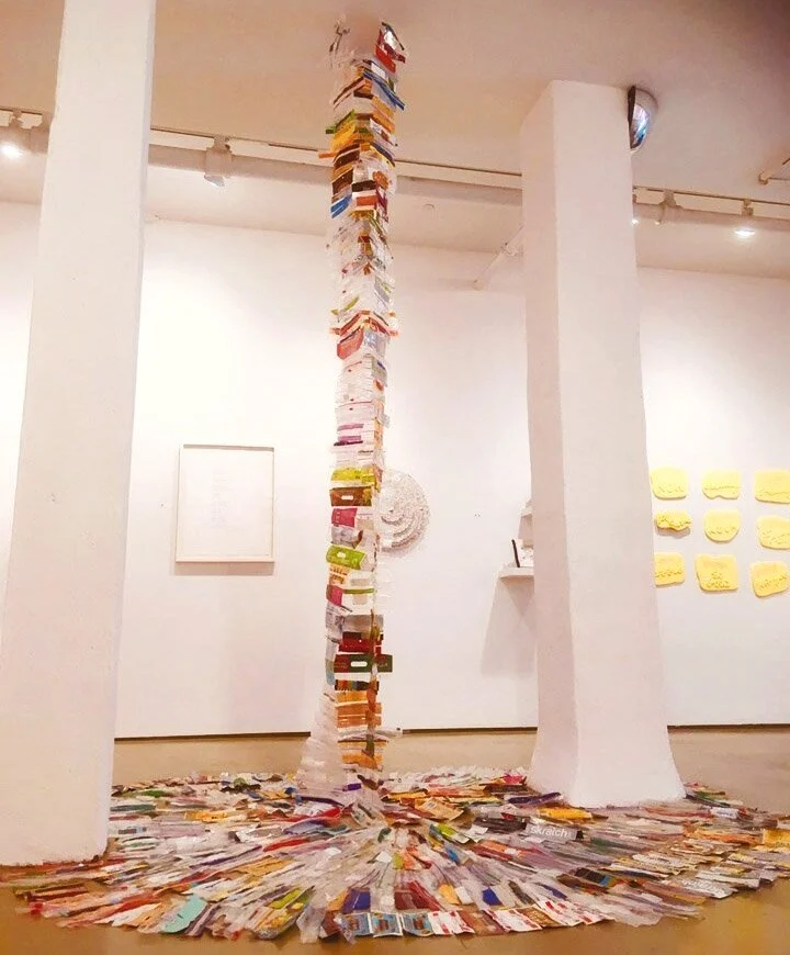 Extra Value site specific installation,  re-purposed ziplocks, thread, plastic